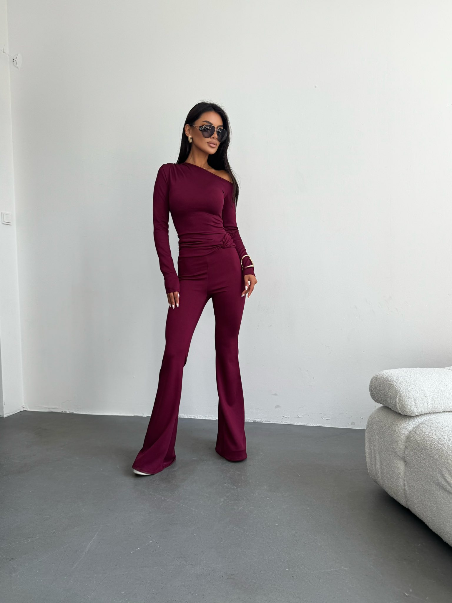 SPODNIE DZWONY MOENE BORDOWE